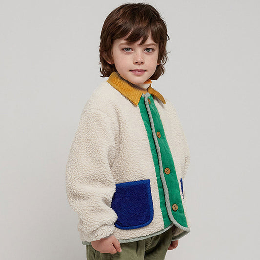 Corduroy Patchwork Thickened Warm Color-Block Polo Cardigan Coat